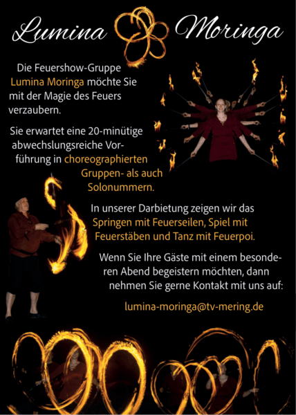 - 20. April 2016: Die offizielle Gründung der Showgruppe unter dem Namen „Lumina Moringa“.