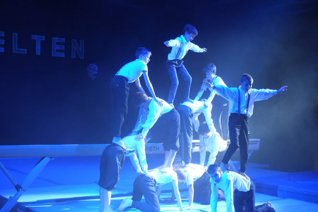 Viel Applaus für ihre energiegeladene Choreographie erhielten die Jungs, die sich auf der „Titanic“ austobten, als Frauen und Kinder das Schiff schon verlassen hatten. Mark Winten verriet, dass diese Turner im Alter von 10 bis 15 Jahren mit Übungsleiterin Magdalena Schöpf durch ihre großartigen Leistungen sich sogar fürs diesjährige Landesfinale qualifiziert hatten.